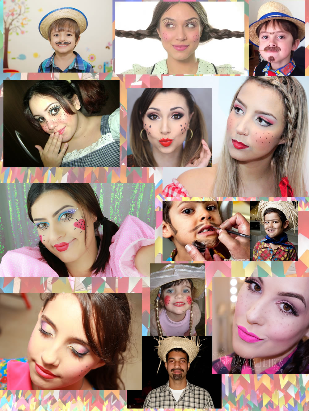 Não tem regra nem segredo na hora de se maquiar para festas juninas. A mistura de cores é permitido e vale até bigodões, cílios de boneca, monocelhas, sardas e pintinhas…